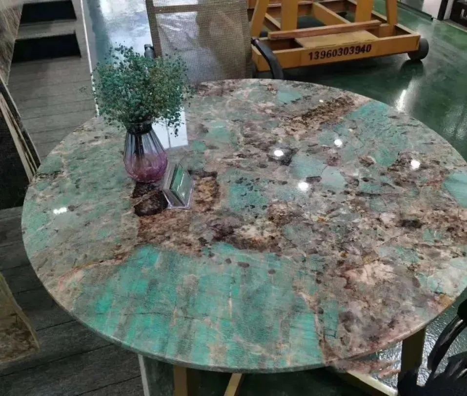 亞馬遜綠清透得如陽光下的海面,蔚藍,青綠,飾上白色紋理,如陽光下的泡沫般閃爍,具有很高的藝術(shù)性。人們認(rèn)為它是有靈性的石頭,可以在平穩(wěn)漸進中改善運氣便將它大規(guī)模的運用于居室。亞馬遜綠大部分用于背景墻以及臺面桌面的使用。